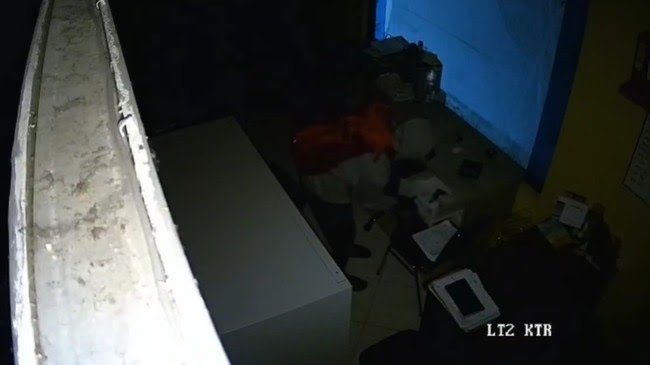 Aksi pelaku terekam CCTV di lokasi, Tampak pelaku memakai masker berjalan di atas tangga menuju ruangan tempat brankas tersimpan.